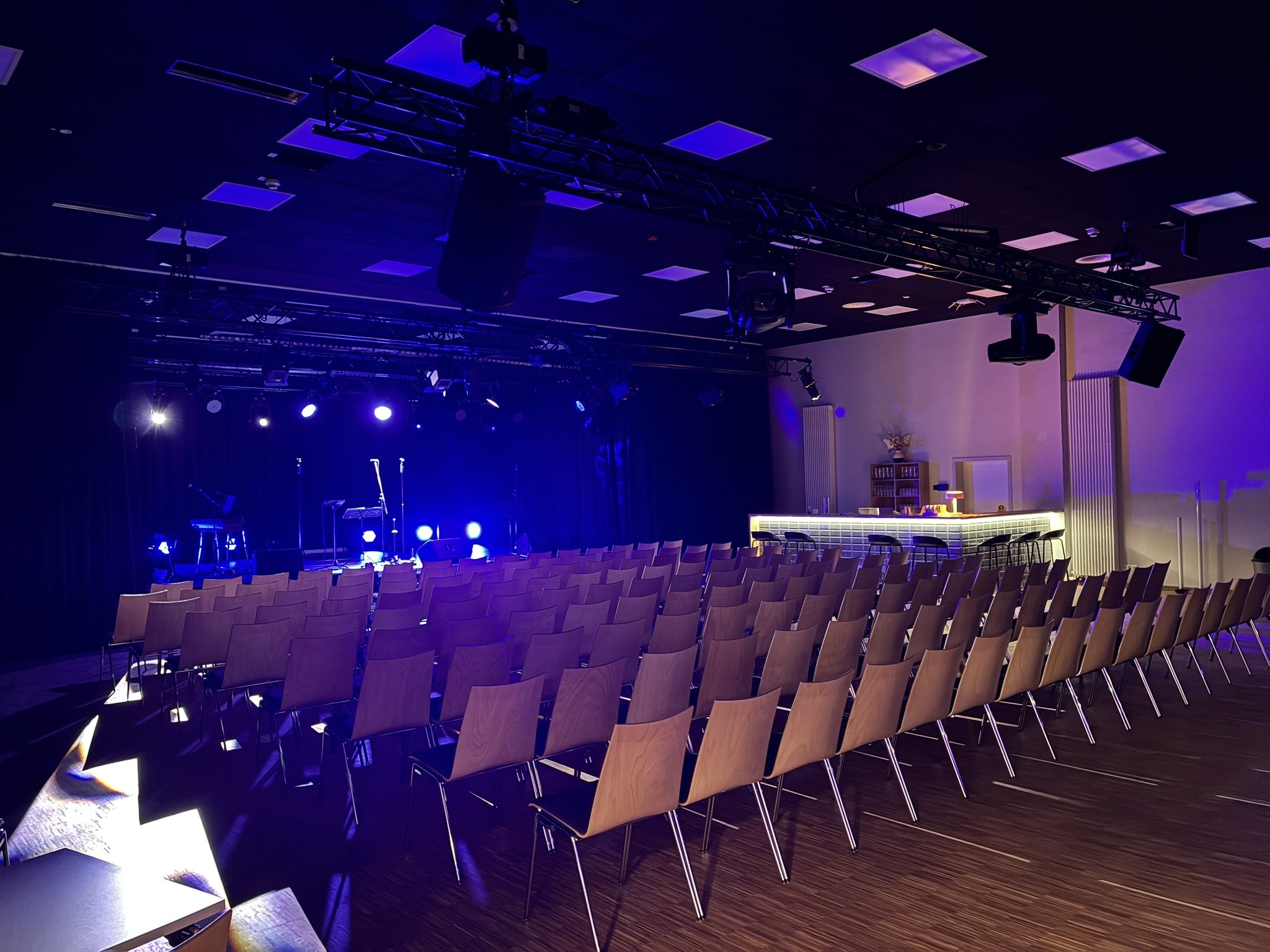 Es entsteht ein technisches Konzept für Proberaum und Tonstudio, für Tanzraum und Jugendcafé. Und natürlich für den großen Saal. Wie viele Stunden Felix und David in das Projekt investieren? Das weiß ich nicht. Ich glaube, auch die beiden haben nicht mitgezählt. Aber es sind viele. Richtig viele. So viele, dass sich manchmal ein schlechtes Gewissen bei mir regt. Spreche ich auch an bei den beiden. Soll ich nicht haben,